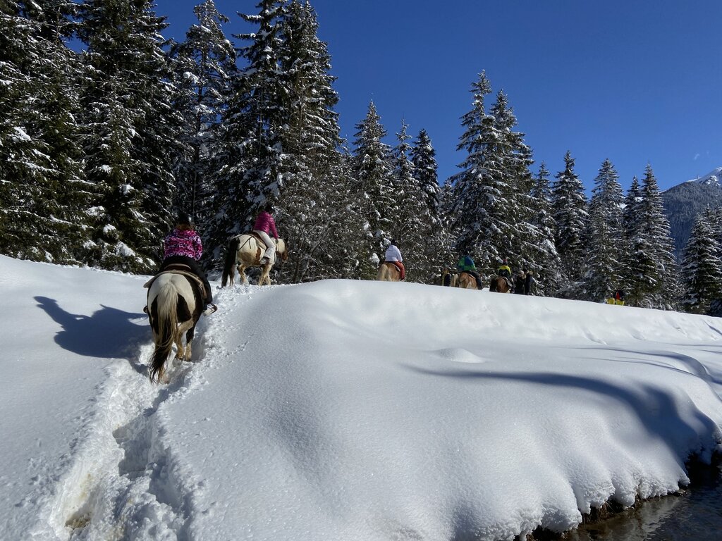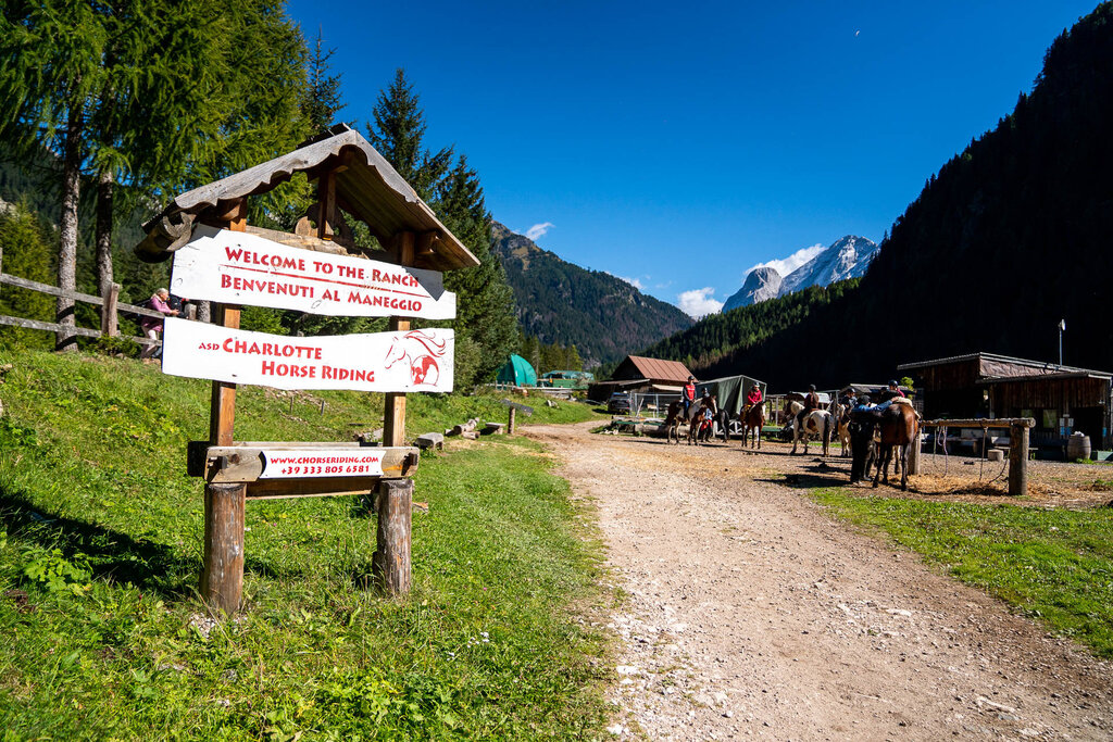 Carlotta und ihre Mitarbeiter organisieren Spaziergänge und Lektionen, im Grünen der Natur oder im Schnee, von 30 Minuten bis zu Trekking, die einen ganzen Tag dauern, geeignet für alle. Sie überqueren die Wiesen, die den Bach "Avisio" säumen, und steigen im Wald zu Aussichtspunkten auf, um die Dörfer von oben mit den Gipfeln des Pordoi und des Gran Vernel in Sichtweite zu bewundern. Möglichkeit, Ausflüge mit Pony für Kinder und romantische Reiten zu zweit in der Umgebung der Dolomiten zu buchen. Im Winter wird auch Equestrian Ski Dragging praktiziert.