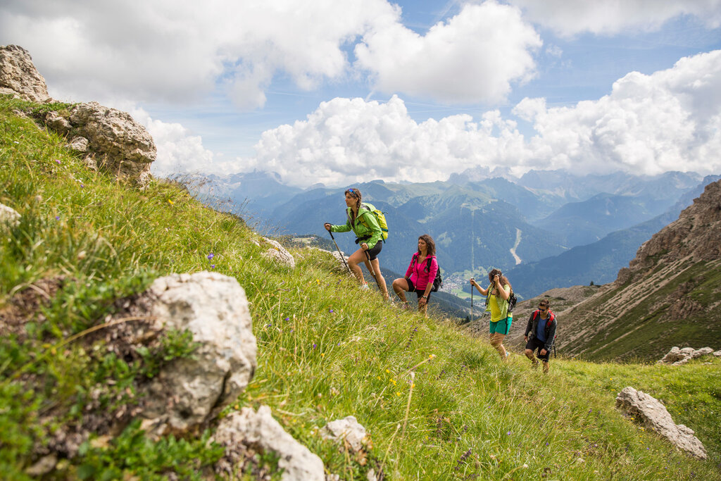 There are endless ways to stay in touch with nature and experience the mountains. The program of the guides is precisely aimed at offering maximum support with respect to the opportunities offered by the territory throughout the year. You can sign up for: rock courses and sports climbing, hiking - even at dawn to admire the Enrosadira, trekking from refuge to refuge, mountaineering, via ferrata, snowshoe walks, ski mountaineering and freeride outings, climbing on ice waterfalls. Activities can be booked at the Sport Check Point offices in Pozza and Moena (ski school).