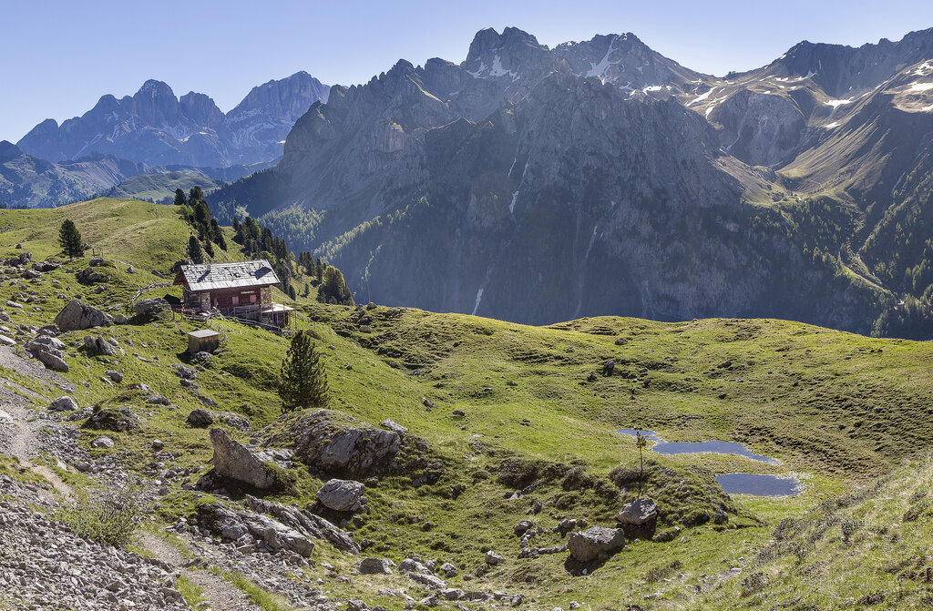 Once left "Cappella del Crocifisso" behind, or as local people call it, "Ciapela de la Mont de Pozza", take the road that, with gradients at times quite steep, goes up through the woods. Then pastures as far as the eye can see, some isolated cabin and only one mountain cottage. Breathe in the fine air, enjoy the silence, envy the freedom of cows, donkeys and horses, which blissfully graze here, and embrace the energy of nature! If you want, your hike can end here with a stop at the farmhouse, letting yourself be pampered by typical dishes. Malga Monzoni is a necessary step to reach Vallaccia hut, Cima Undici and Cima Dodici, Lagusel pond, or Taramelli hut and Selle Pass on San Pellegrino side.